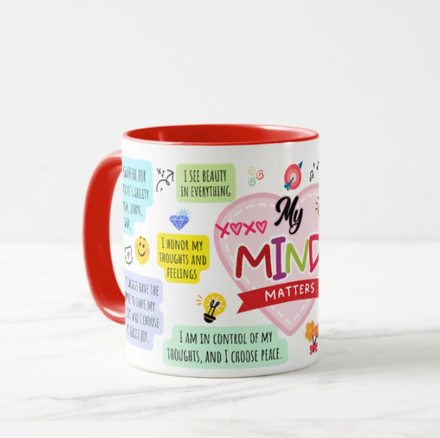 Prioritize your mental health with every sip! The My Mind Matters Mug is designed to remind you of the importance of self-care, mindfulness, and emotional well-being. Whether you're starting your morning with coffee or winding down with tea, this mug is a gentle nudge to be kind to yourself.