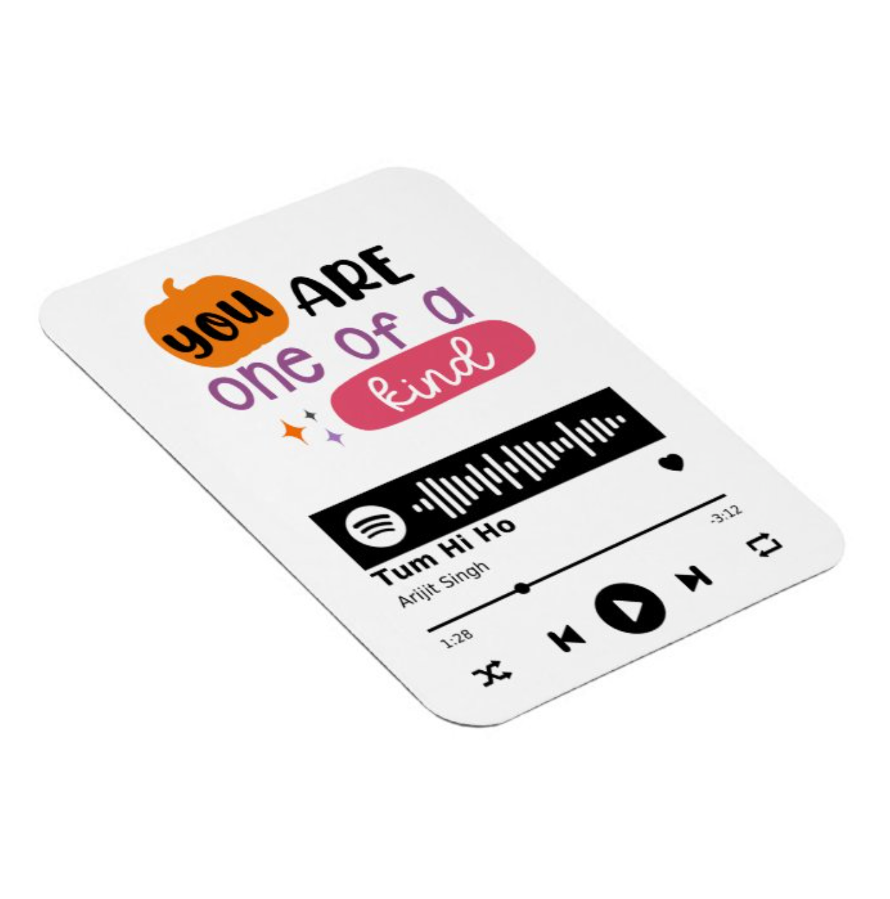 The “One of a Kind” Song Dedication Fridge Magnet is a beautifully designed keepsake that lets music speak when words fall short. Featuring a scannable Spotify code, this magnet plays a carefully chosen song—turning a simple fridge moment into a powerful emotional experience.